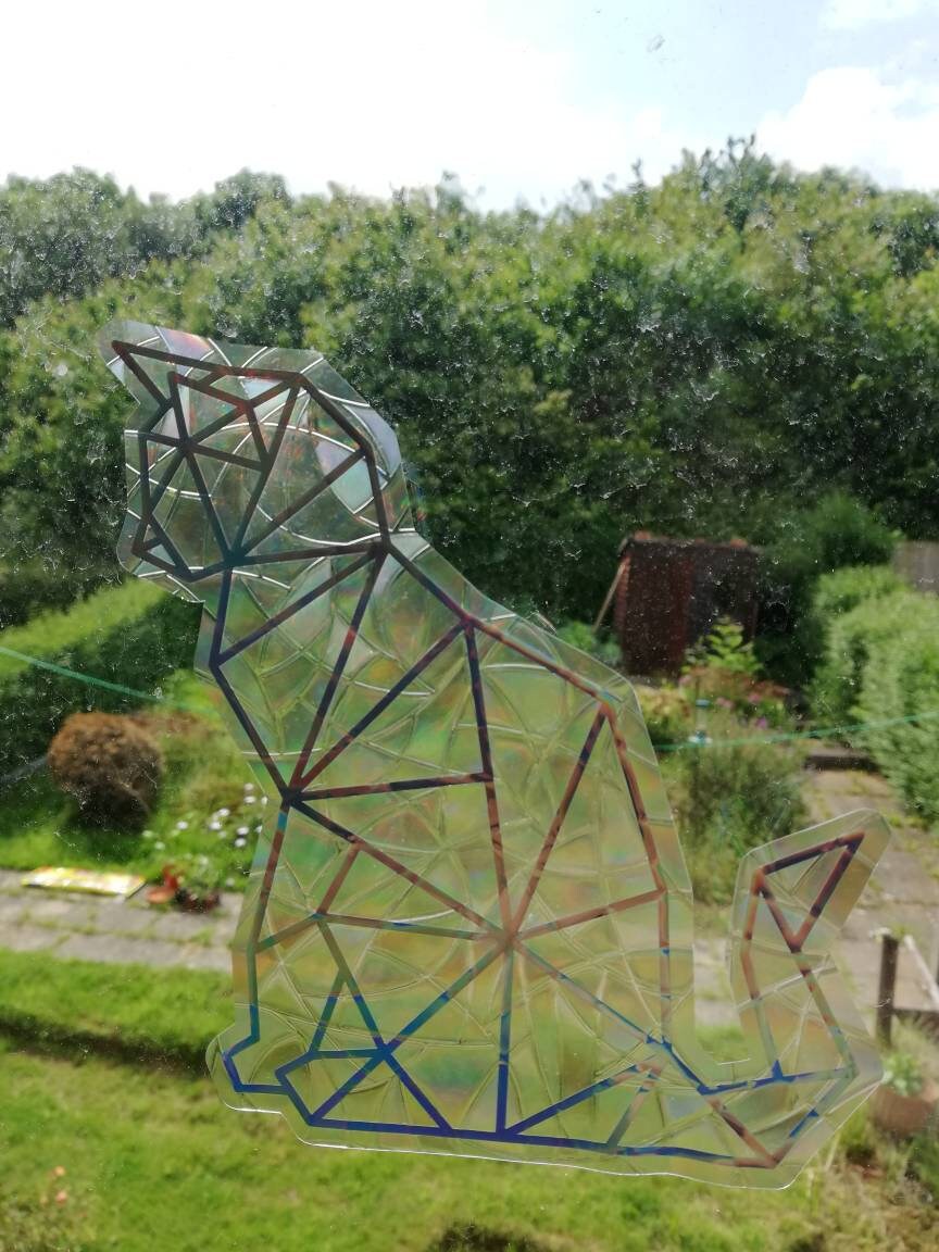 Geometric Cat Suncatcher Sticker - Easy to use window rainbow maker