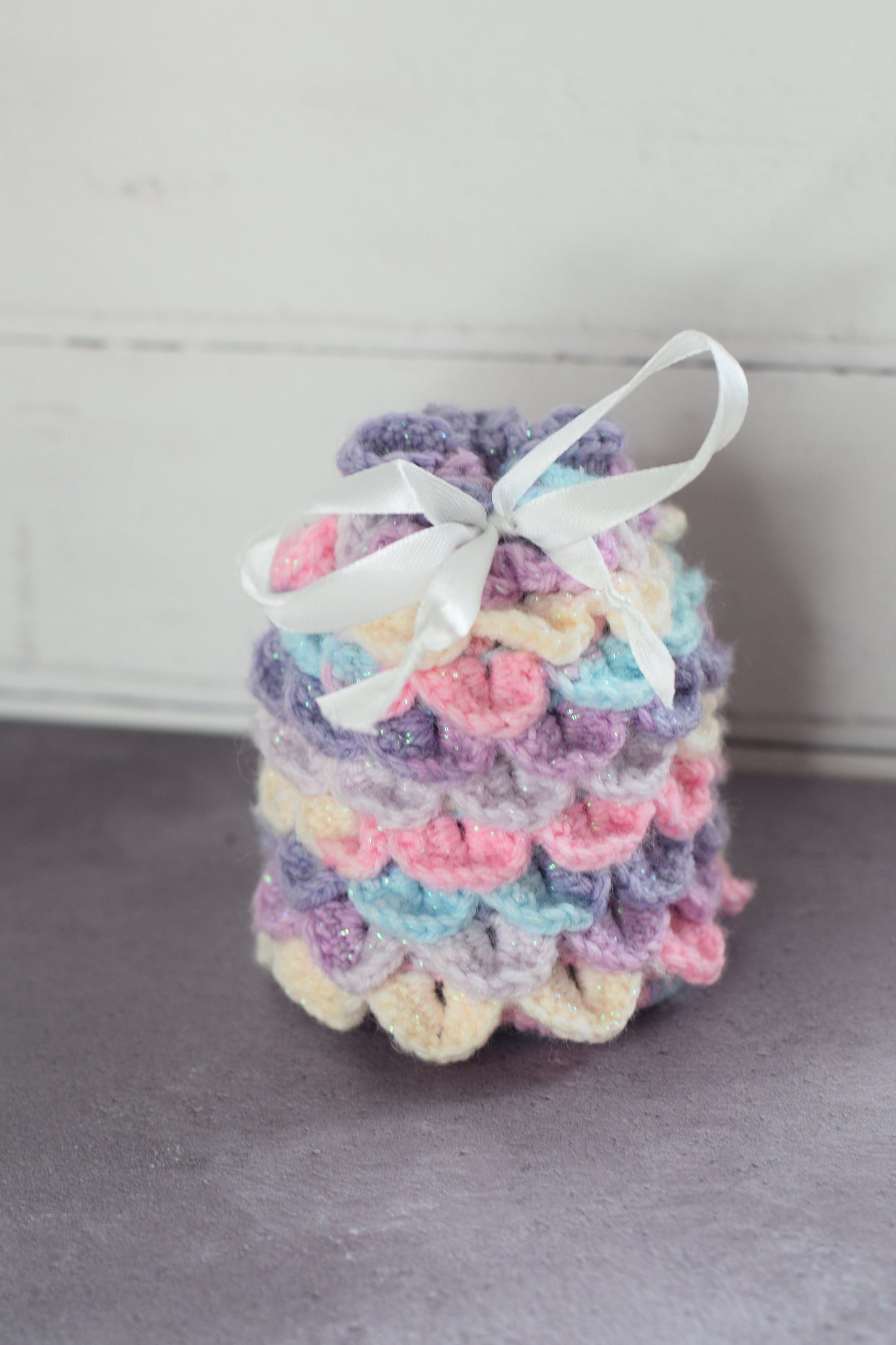 Pastel Dragon Egg Dice Bag! - With Twinkle Yarn // Crocheted scale effect bag, handmade, great for dice storage